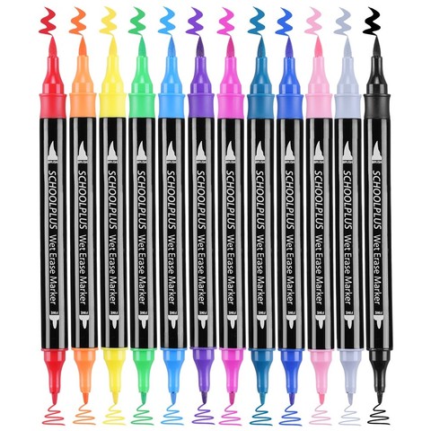 Ensemble de marqueurs effaçables à sec/humide à pointe ultra-fine 12 couleurs pour tableaux blancs pour matière plastique